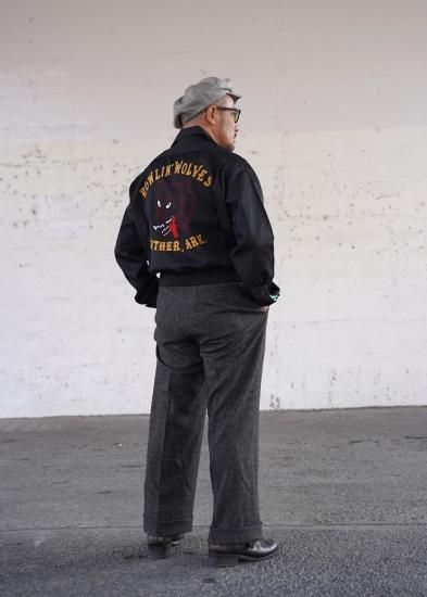 1940年代のストアブランドブルゾンを再現した一重仕立てレーヨンコットンブルゾン。シルエットは当時のそのままに、当時実在した刺繍を再現。フロントにはタロンジップを使用しています。モーターサイクルスタイルにも、ドレススタイルのどちらにも幅広く活躍するブルゾンです。