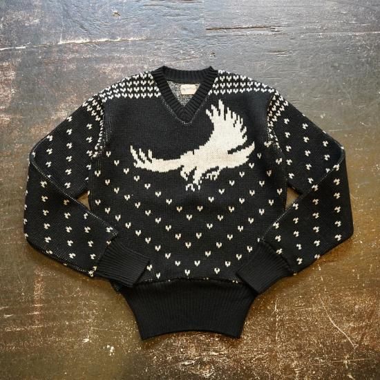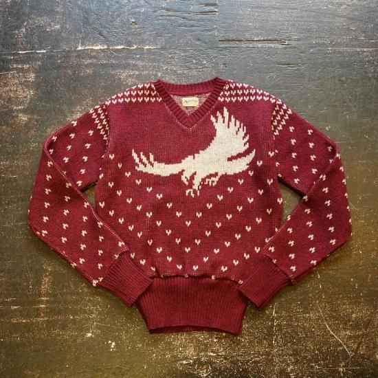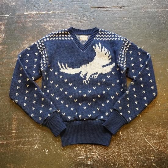 1940年代スタイルのVネックニット。アメリカのストアブランドで販売されていたレアな柄を、オリジナルの編目通りに再現しました。デザインは当時のそのままで、当時の雰囲気を感じられる製品に仕上がっています。
