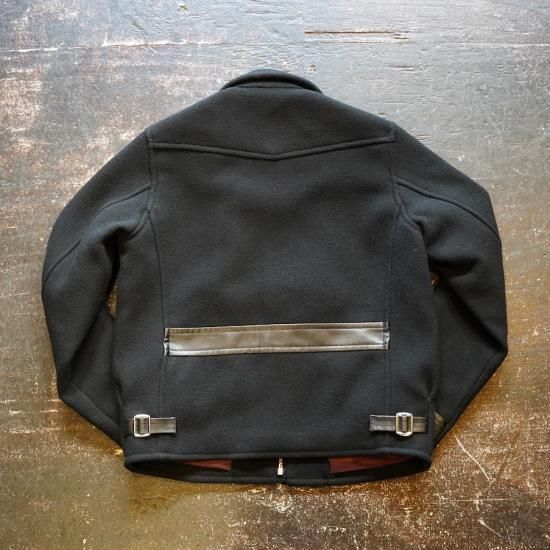 1930年代のUSスポーツジャケットを復元した製品。デザインは1930年代を感じさせる切り返しパターンです。ブラックメルトン×ホースレザー、鉄バックルにタロンジップを使用し、裏地はオリジナルワインレッドのレーヨンコットン生地です。
