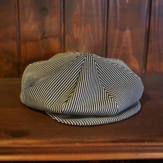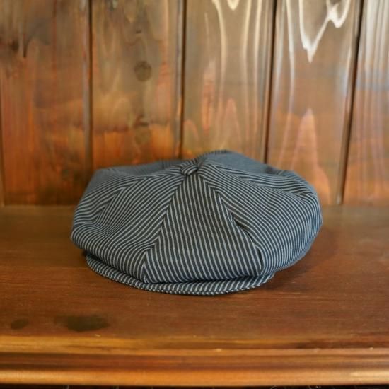 グルービン定番の1940年代小さめ綿なしのキャスケット。オリジナルの帽子をばらしてそのまま同じサイズ、デザインで復元しています。裏地はオリジナルのコットン生地、スベリにはロゴマークの箔押しが入っています。